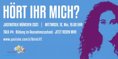 Schule, Freizeit, Sport – Bildungsorte junger Menschen befinden sich seit über einem Jahr im Ausnahmezustand! Jugendliche werden dazu nur selten gehört: Wie läuft es aktuell in der Schule? Was für Möglichkeiten gibt es jenseits der Schule? Wo liegen die Probleme und was geht alles verloren? Gibt es Verbesserungsvorschläge? Welche Chancen bietet die Krise Neues auszuprobieren? Wie kann mehr Mitgestaltung ermöglicht werden? Zu diesen und weiteren Aspekten tauschen sich junge Münchner*innen mit Verantwortlichen aus Stadtpolitik und Stadtverwaltung beim TALK#4 aus.